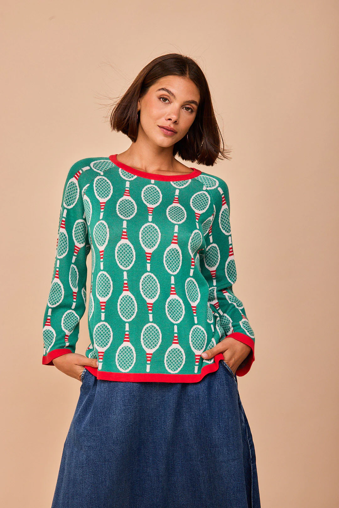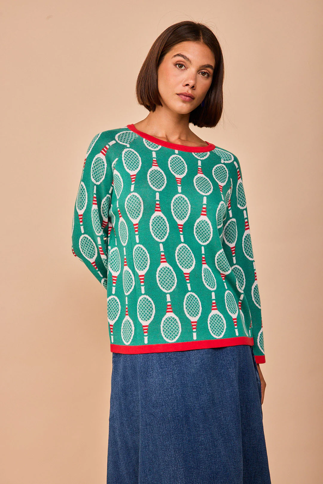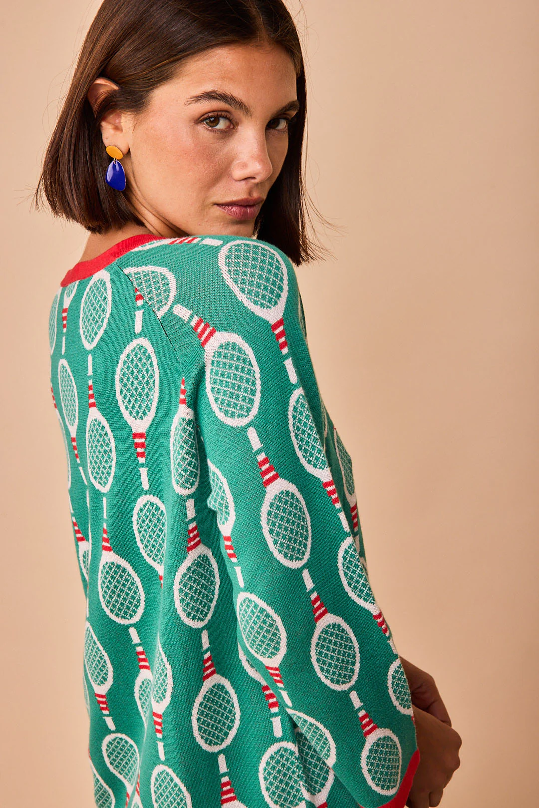 No es solo un jersey, es una declaración de intenciones. Con su verde vibrante y ese estampado de raquetas que nos transporta directamente a la estética retro-sport más cool, es la pieza perfecta para quienes no quieren pasar desapercibidas.